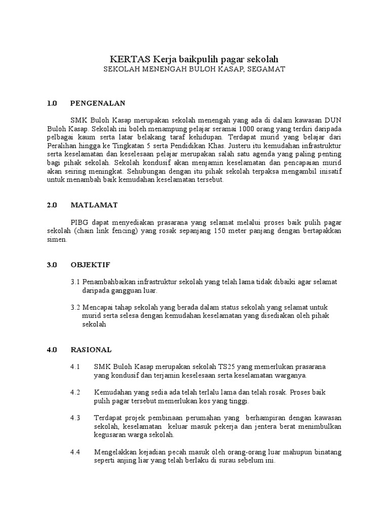 Kertas Kerja Baikpulih Pagar Sekolah Pdf